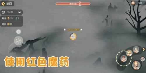 除此之外,也能够选用【红色魔药】,一旦使用,我们便处于“无敌”状态,能在特定时间内抵御毒雾(不过与使用火把不同,此效果无法作用于周围的队友)。