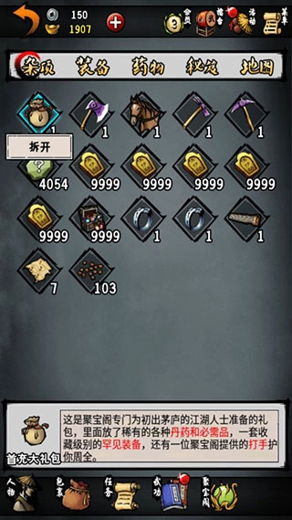 1、高度开放引人入胜的剧情,超过120种武功秘籍,贯穿古今的神兵利器。