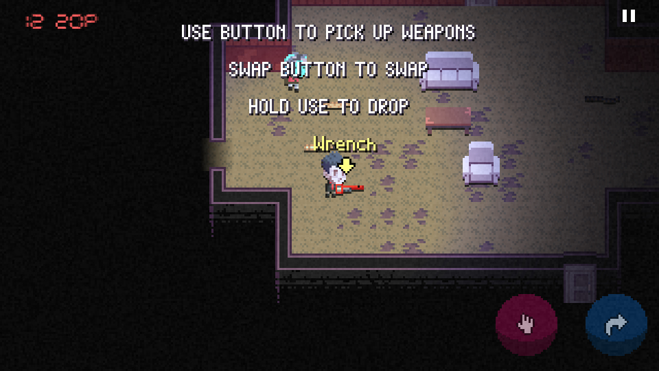 5、进入第二个房间,地上有武器可以捡来使用。