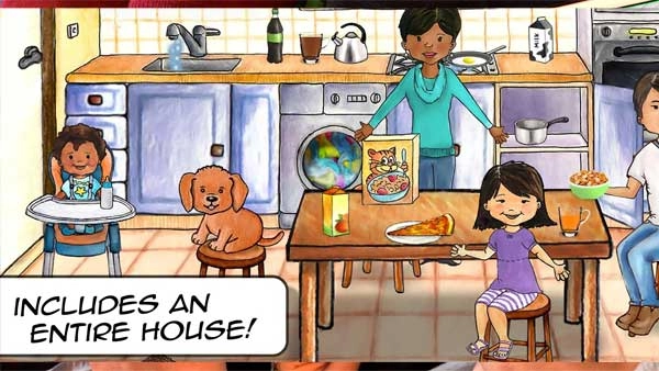 2、您的孩子可以探索和使用房屋中的所有物品。角色吃饭,睡觉,洗澡,刷牙等等;