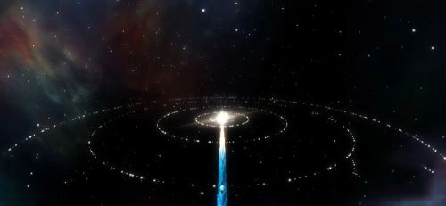 最后小球一个人默默走到了塔的顶端,也开始爆炸了,形成我们一开始的进入游戏里面的宇宙。这个宇宙就是这样来的。