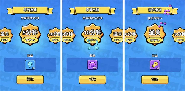 每次通关记得领取一下,会获得一把宝箱钥匙,奖励分别有5分钟的、10分钟的以及15分钟的。