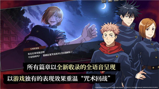 《咒术回战幻影夜行(呪術廻戦 ファントムパレード)》的国服版本,是由哔哩哔哩游戏代理的咒术回战幻影夜行国服。此版本在内容上与日服等国际服务器保持同步,还对游戏内文本进行了汉化,玩家能拥有比国际服更优质的游戏体验。 咒术回战幻影夜行获得知名日本动漫IP《咒术回战》正版授权,游戏集结了原作中五条悟、伏黑惠、虎杖悠仁等众多角色,并且包含游戏独占的全新剧情,为喜爱咒术回战的玩家带来眼前一亮的游戏感受。喜欢这款游戏的小伙伴们,赶快体验吧!