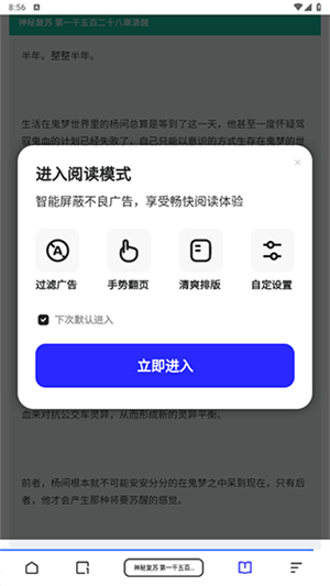 3、系统将自动过滤广告内容,并支持字体大小调整,点击“立即进入”继续