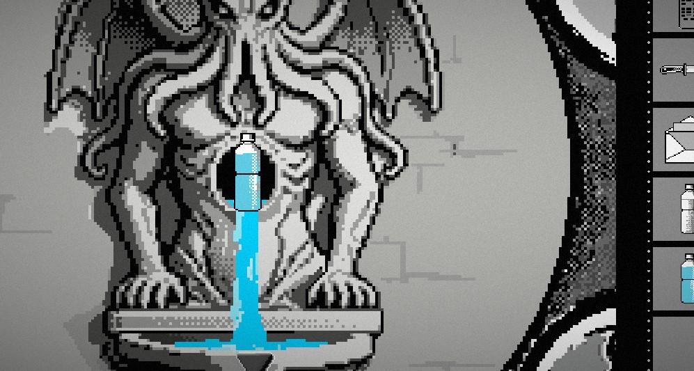 3、直面不可名状: 游戏充满了克苏鲁神话的元素。你将直面形态怪诞的雕像和那些不属于这个世界的“幼崽”,感受它们带来的无声恐惧。