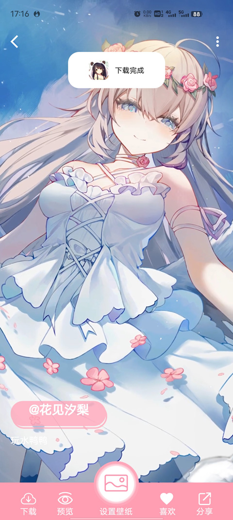 3、等待完成提示出现,壁纸便会自动保存至手机相册。