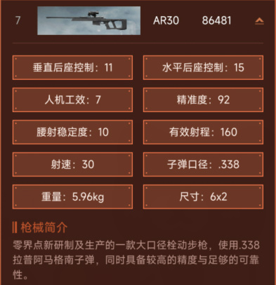 零界点新研制及生产的一款大口径栓动步枪,使用.338拉普阿马格南子弹,同时具备较高的精度与足够的可靠性。
