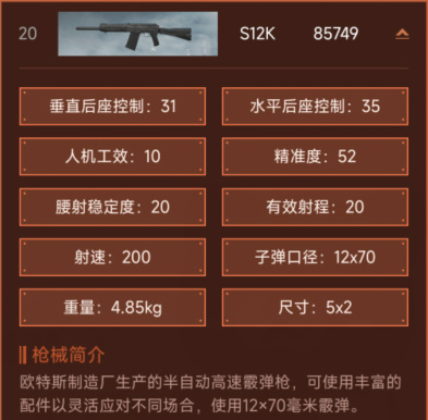 欧特斯制造厂生产的半自动高速霞弹枪,可使用丰富的配件以灵活应对不同场合,使用12×70毫米霞弹。