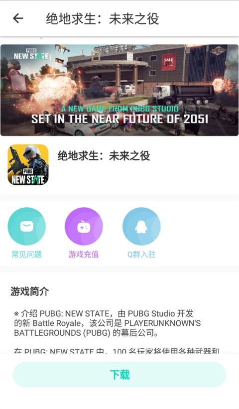 2、任意选择一款需要的游戏,这里以【绝地求生:未来之役】为例——点击屏幕下方的【】。