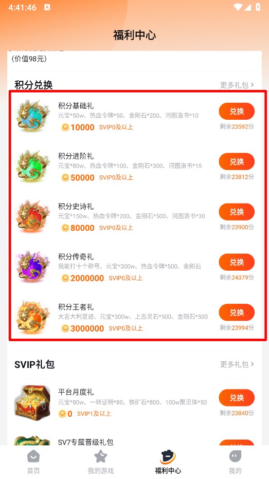 6、在福利中心可以兑换喜欢游戏的礼包。