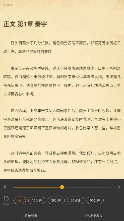 3. 在听书界面可自由调节语速,设置定时关闭等功能