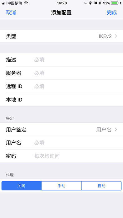 在此处选择类型,并填写相关的服务器、ID、用户名等信息,即可完成操作。