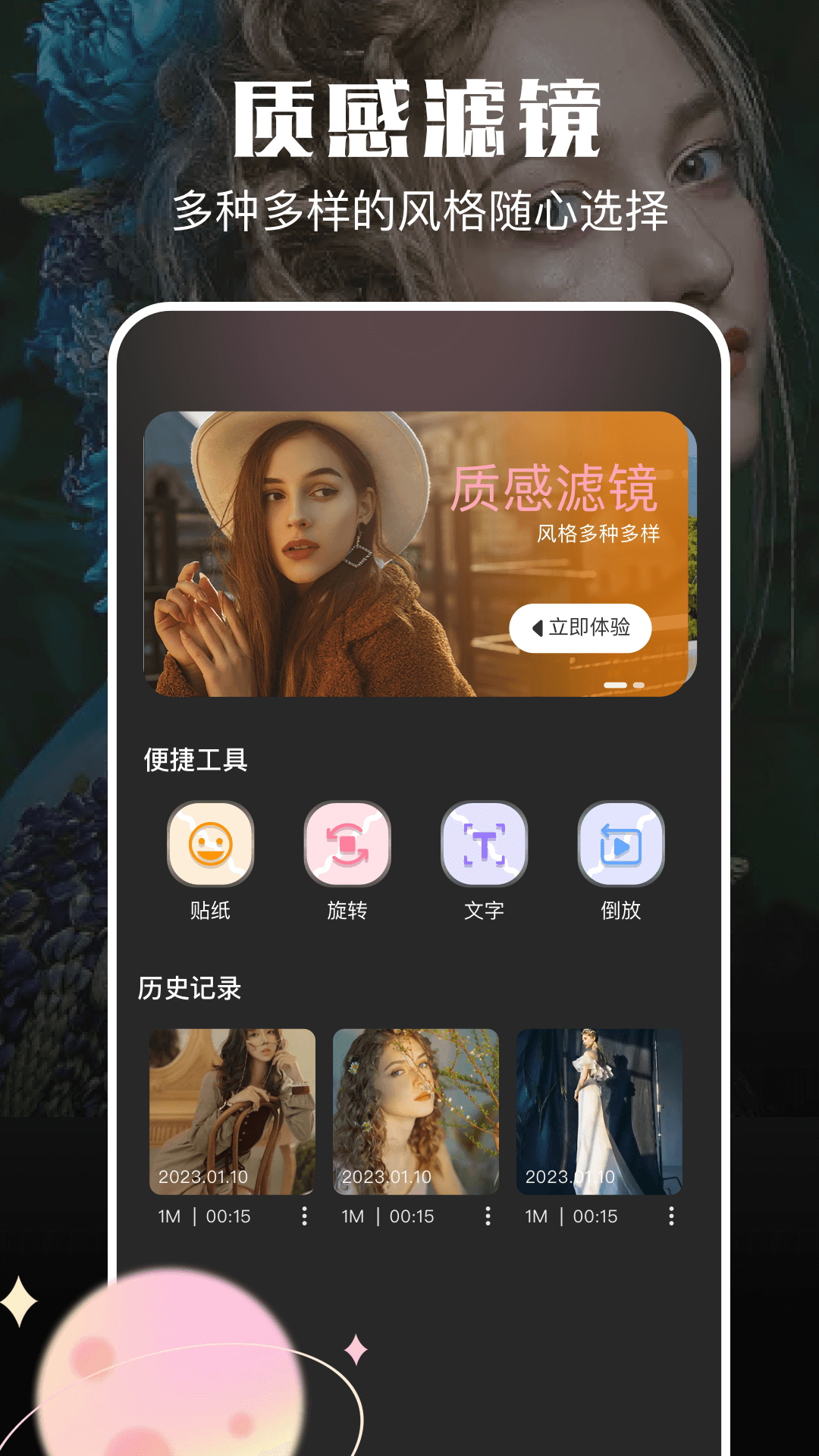 滤镜:拥有海量充满创意的滤镜,任你随心挑选,赋予每张照片独特风格。