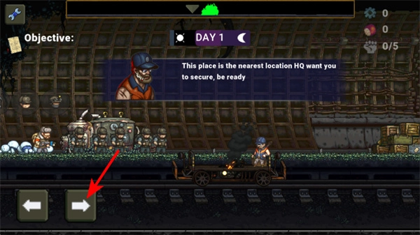2、点击右方向按键,可控制角色或载具向右移动,这是探索场景的基础操作,通过移动可前往不同区域推进游戏。