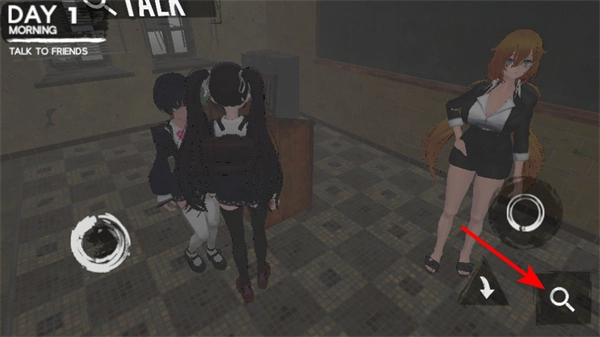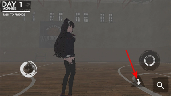 1. 轻点带有向下箭头的按键,便能操控角色做出特定动作。此操作是与场景交互的核心,点击它可以推动游戏进程。