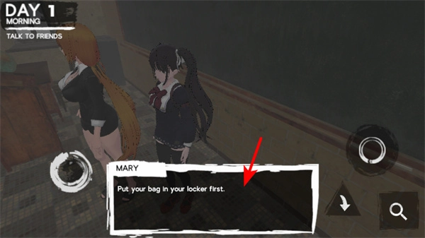 4、根据角色提示,如Put your bag in your locker first,这是完成任务和推进剧情的关键,遵循提示可顺利开展游戏。