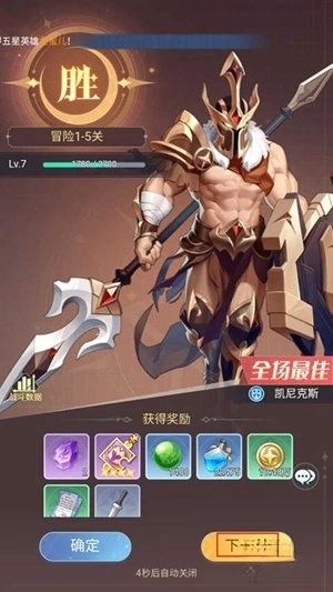 6、使用获得的资源培养你的英雄,提升装备、升级等级、升星进阶,并学习强力技能,为更高难度挑战做好准备。