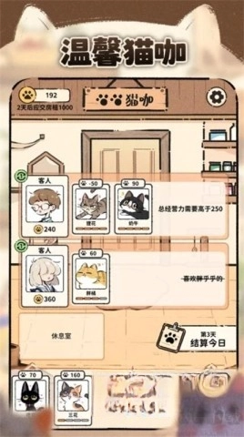 3、消费一定数量的猫币能够解锁新猫咪,每天的新顾客将给您带来不一样的经营体验。