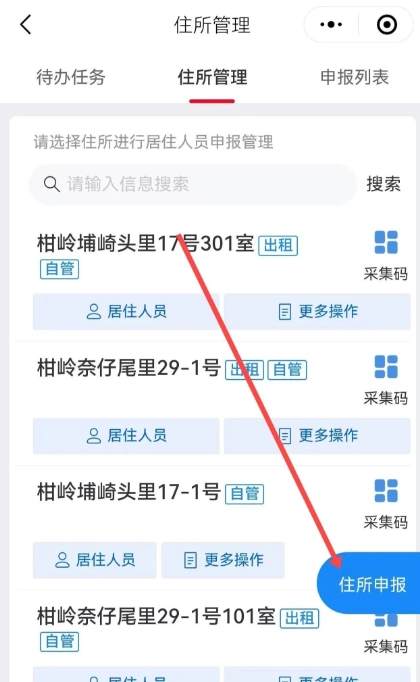 6、在住所管理中,右下角点击:住所申报