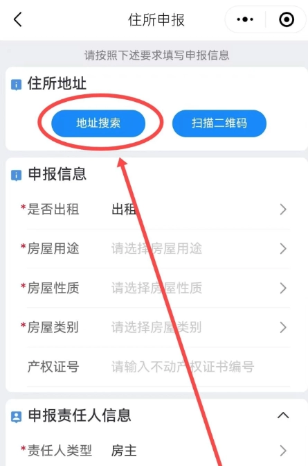 7、在住所申报板块中,点击:地址搜索