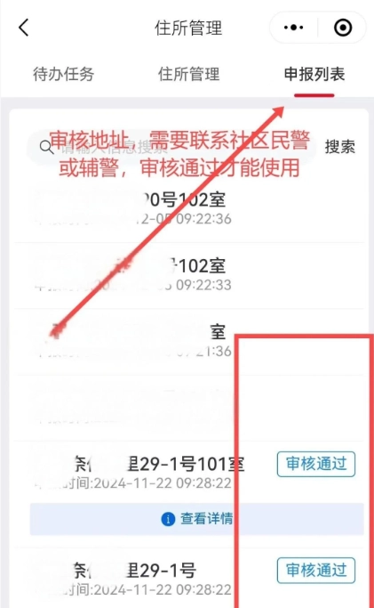 12、提交申报地址后,及时告知社区网格员。随后,等待社区民警及辅警完成审核,审核通过后,就能开展租客人员信息采集报备工作啦!