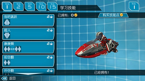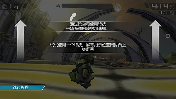 3、喷射加速:点击屏幕使用喷射加速功能,能量可通过腾空和完成特技来积累;