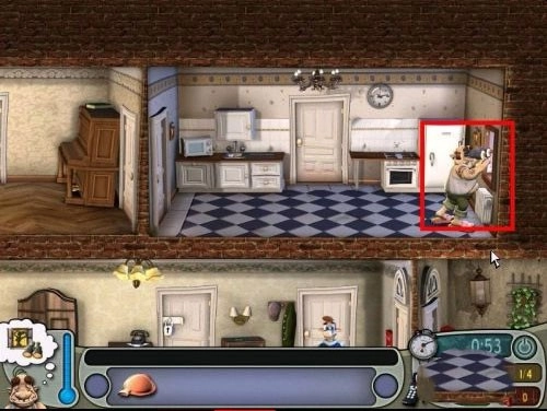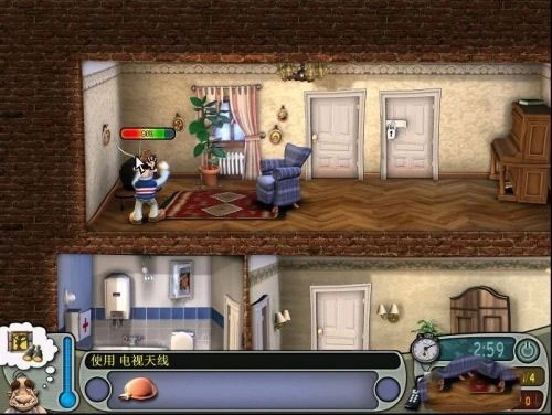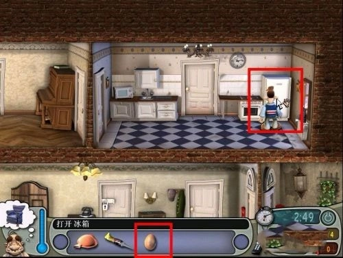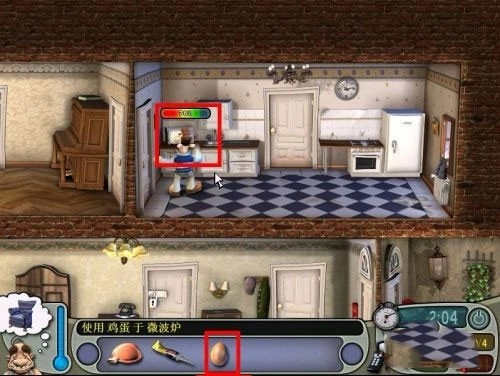 如果时间允许,可以将鸡蛋放进左侧的微波炉中加热。放置过程中会有进度条提示,完成后鸡蛋爆炸,邻居闻声赶来,怒火中烧,首次恶作剧顺利完成。