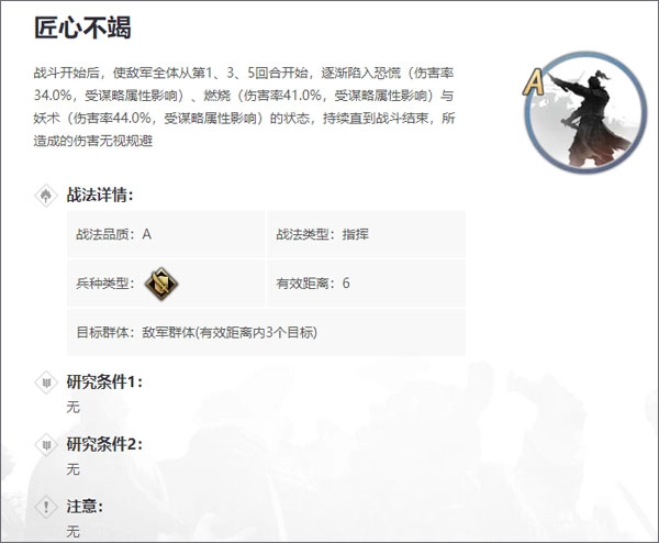 战法:步步为营+愈战愈勇;难测+侧击