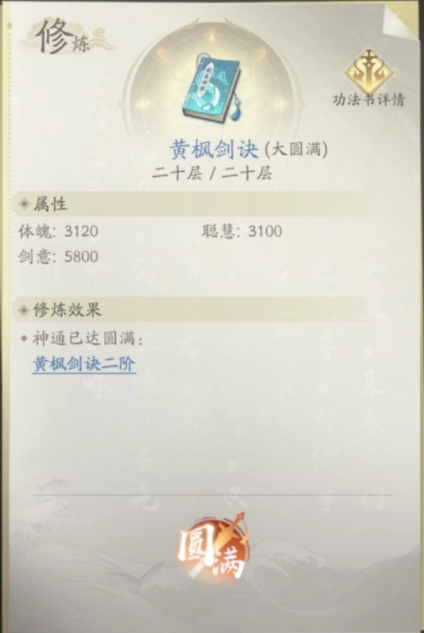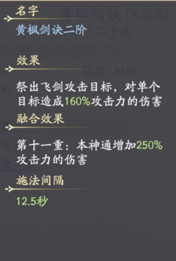 (以黄枫剑诀圆满为例)