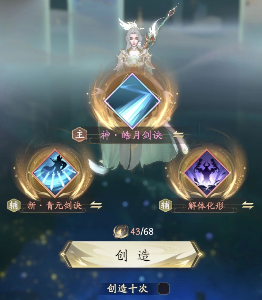 支持一主二副的搭配方式,功法融合的重数越高,自创功法时所需消耗的悟道石数量就越少。