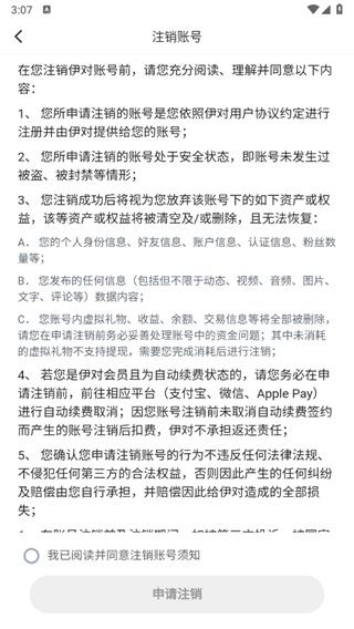 5、最后在注销账号的页面中勾选上协议之后点击【申请注销】即可;Space