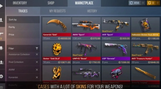 3、前往商城浏览其他玩家上架的道具,可直接购买心仪的小刀,省时又省力。