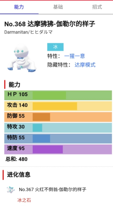 达摩狒狒是本作最恶心的宝可梦之一,有非常优秀的数值,攻击和血量。而冰火模式的攻击和速度提高到了160和135。同时你也可以使用很多的冰与火的招式,还有很多不错的物理攻击做补充。达摩模式与常规模式比有很大的提高,体验非常棒。