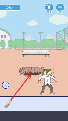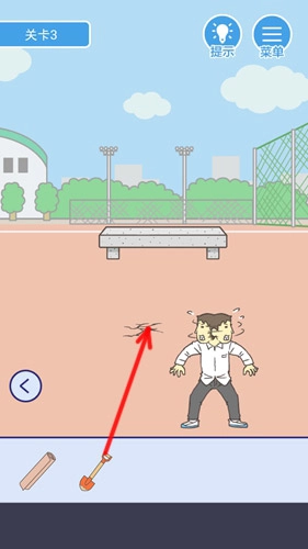 移动到右侧区域,长按道具栏里的铲子,拖动到地面的裂缝位置,就能挖出一个大坑。