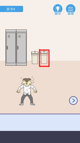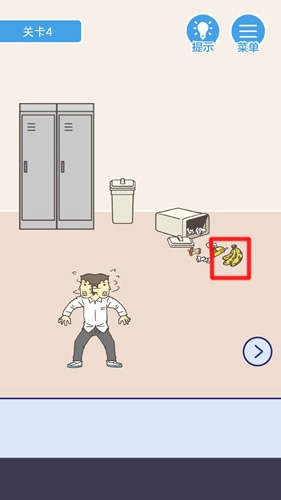 垃圾桶倒下来,可以获得里面的烂香蕉,然后点击右下角按钮前往右侧区域。
