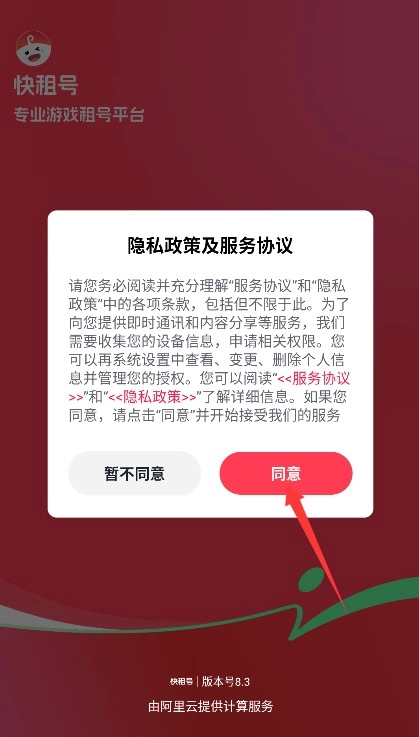 1、首次使用时,需完整阅读平台的服务条款与隐私政策,在确认无误后点击同意按钮,即可进入应用。