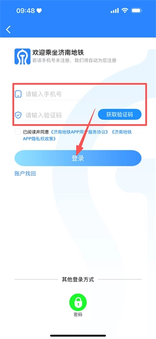 4、输入手机号,填写收到的验证码,点击登录,完成账号登录操作。