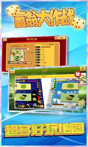 富翁大作战中的玩法丰富多样,不仅可以交易地产,还有刺激的大转盘、随机事件以及奇遇,玩家可以在游戏中购买地产垄断土地,收取过路费、发家致富,也将有概率抽到倒霉的惩罚事件,直接承受大量的经济损失,一夜回到解放前,是一款充满随机性以及乐趣性的棋牌休闲。