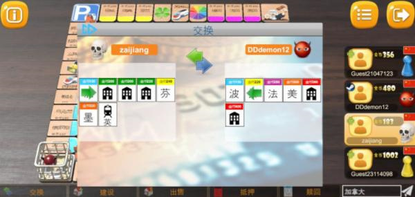 如果你看中了对方的一块地,可以选择交易,用你的土地和金钱换其他玩家的土地,前提是对方要接受你的建议,否则交易将失败。