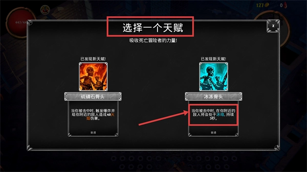 3、在天赋选择界面中,推荐选【冰冻骨头】,被击中时使附近敌人【冻结-3秒】,该效果能有效牵制密集敌方单位。
