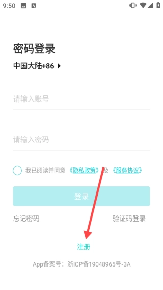 1、启动软件后,点击页面底部的【注册】按钮。