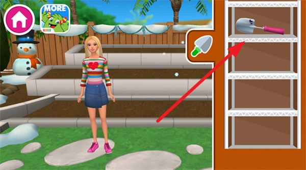 1、在院子里,玩家得用右上角的铲子,在地上挖个坑就可以了。