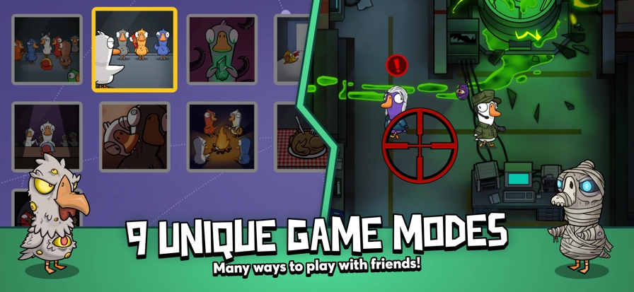 扮演一只鹅,只要不断完成任务就能躲藏起来,并且在最后60秒,其速度也会增加。