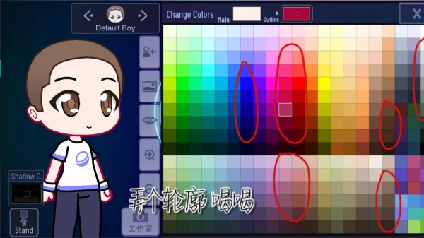 3、轮廓颜色也可以自由的设计,圈出的也是比较推荐的颜色。