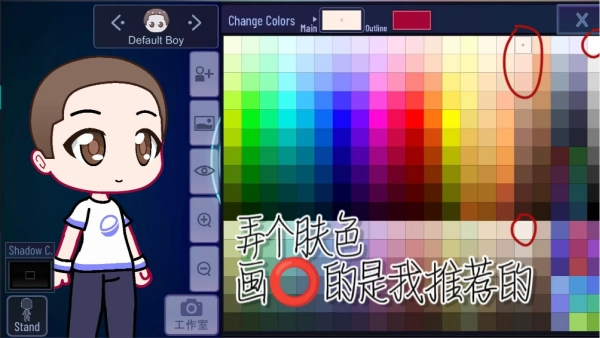 2、接下来我们可以设计人物的肤色,图中圈出的是比较推荐的肤色,大家也能按照自己的喜好进行选择。