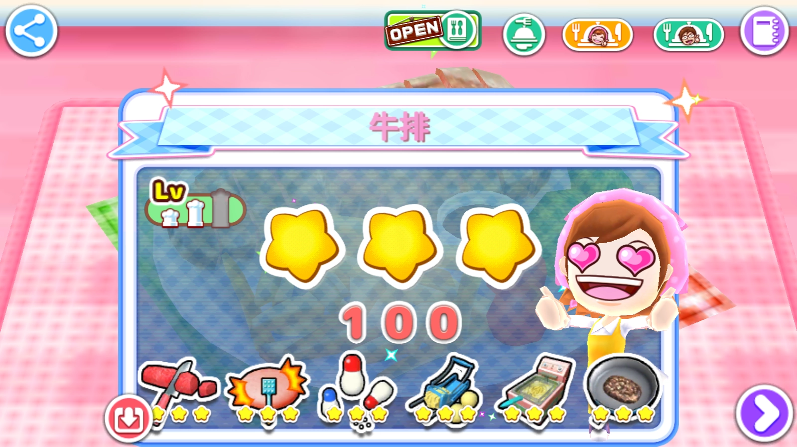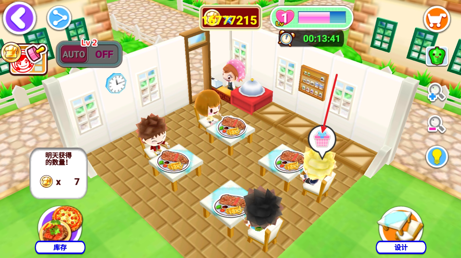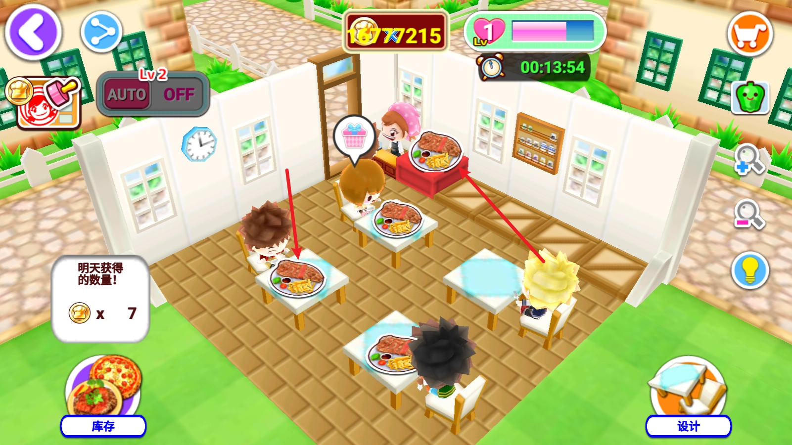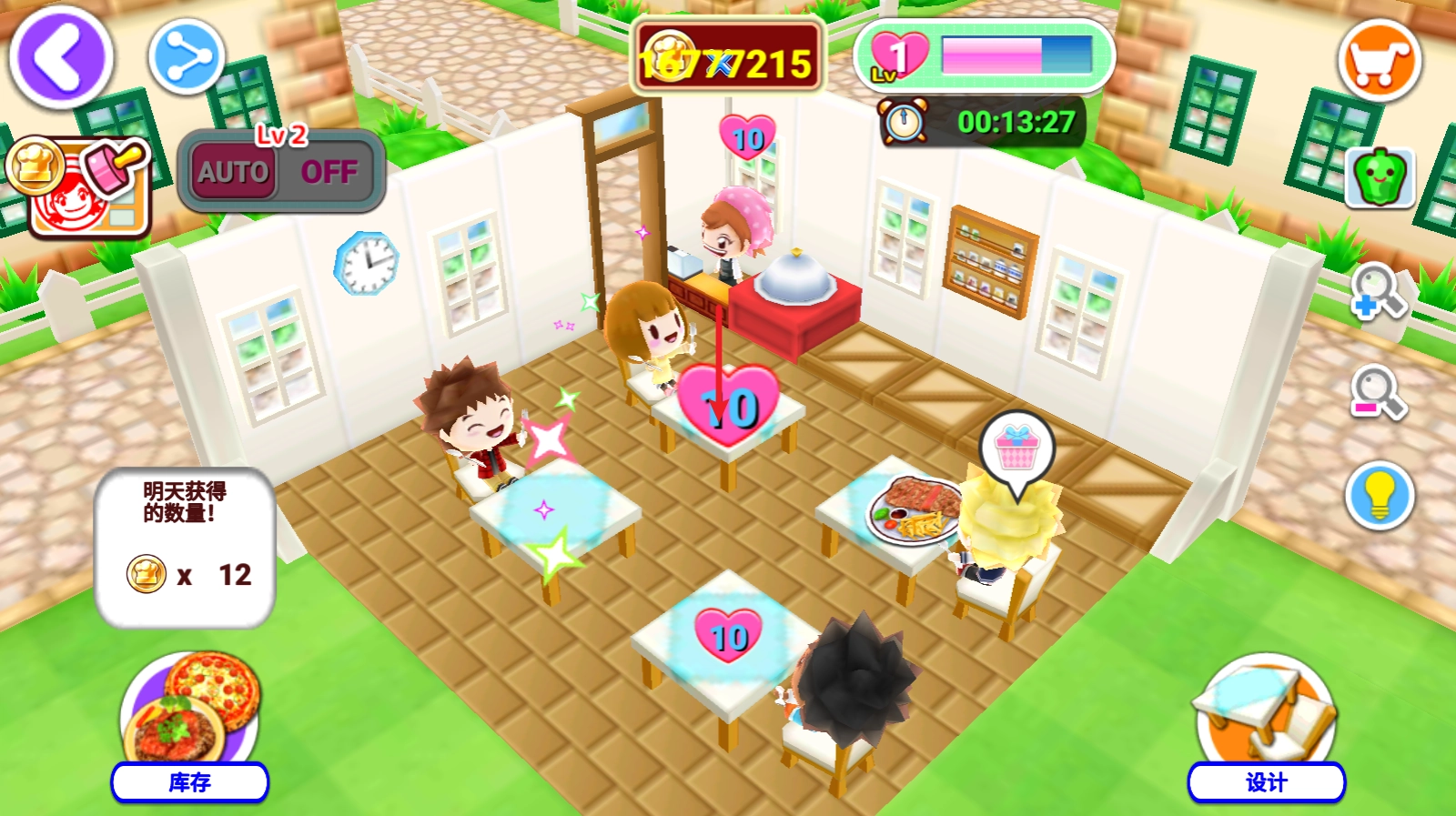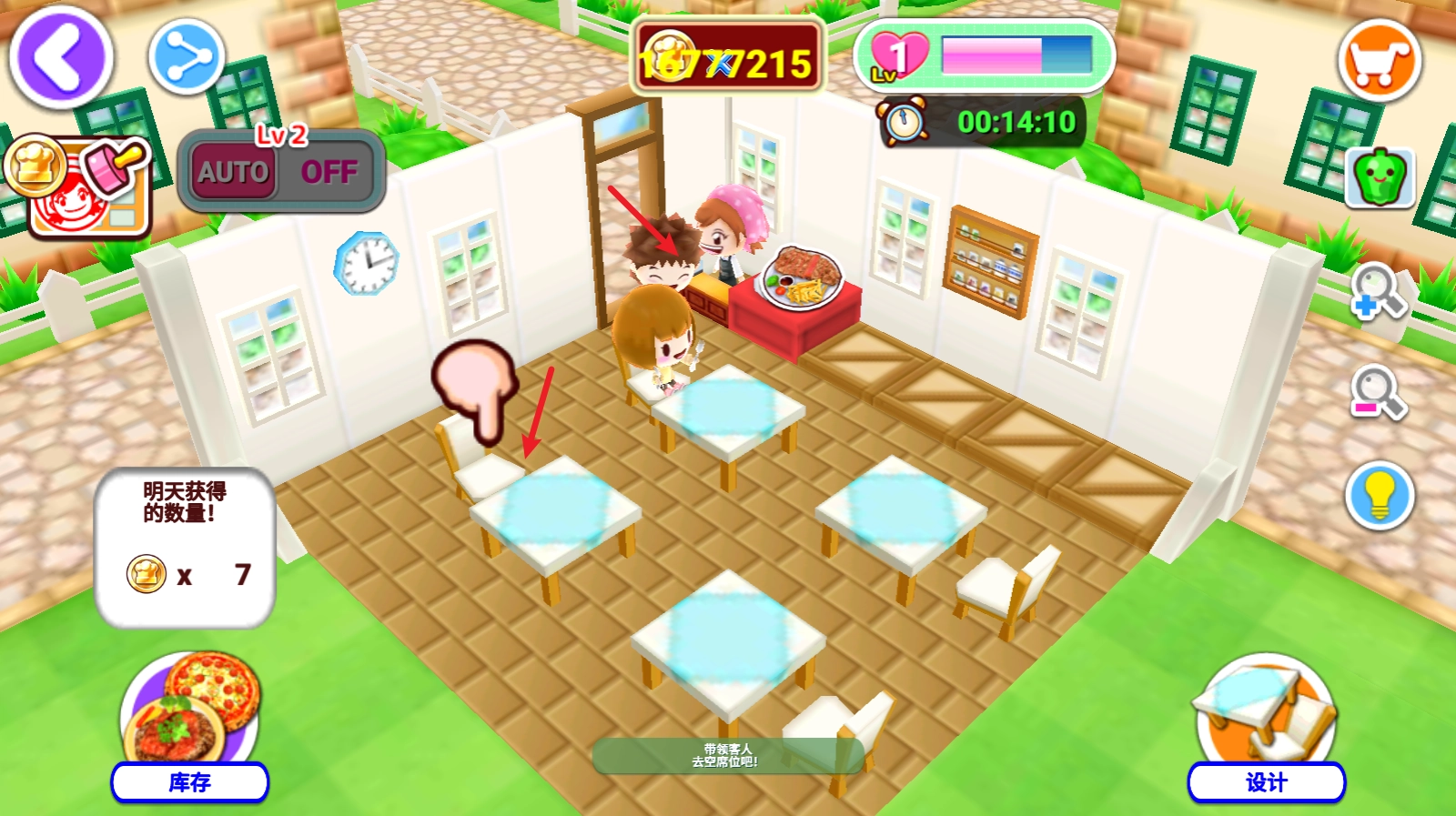 7、客人用餐完毕后,会在桌上留下爱心。点击爱心即可获取奖励,之后就能继续接待下一位客人了。