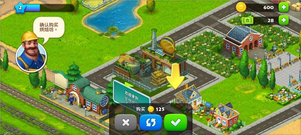 4、4级:建设饲料厂,建设前落点前是可拖动的,将其拖到到偏僻一点的位置,再点击“√”,然后建设房屋,增加5人口(初始人口60),增加一块农田,此时人口65,工厂解锁乳品厂、不建不用管。