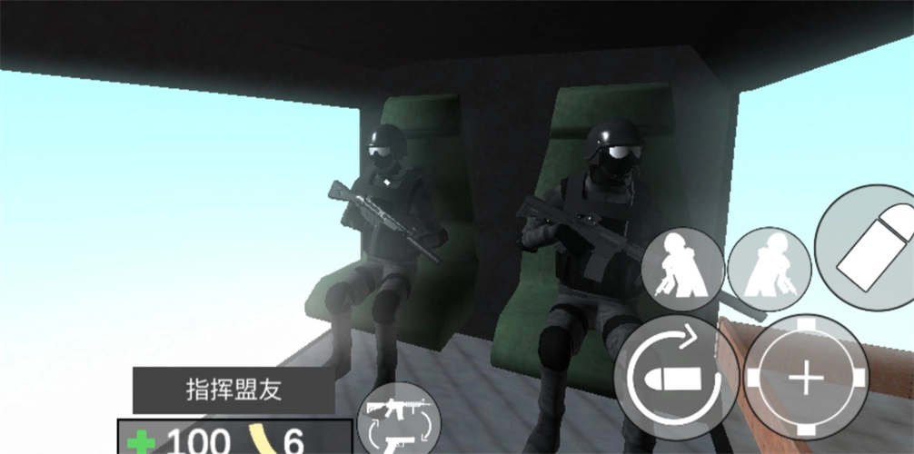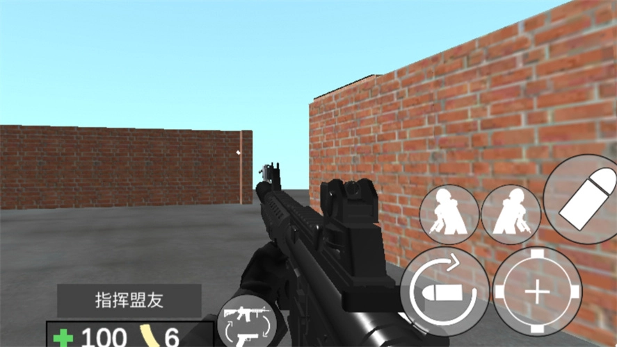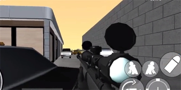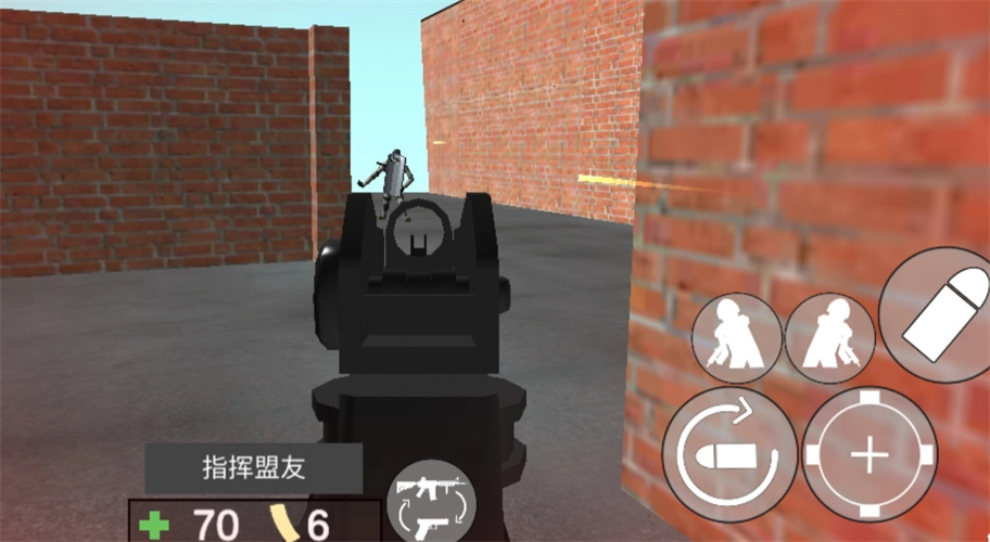 4、随后通过左侧控制角色移动,右侧则能完成蹲下、射击、瞄准等各类不同动作。
