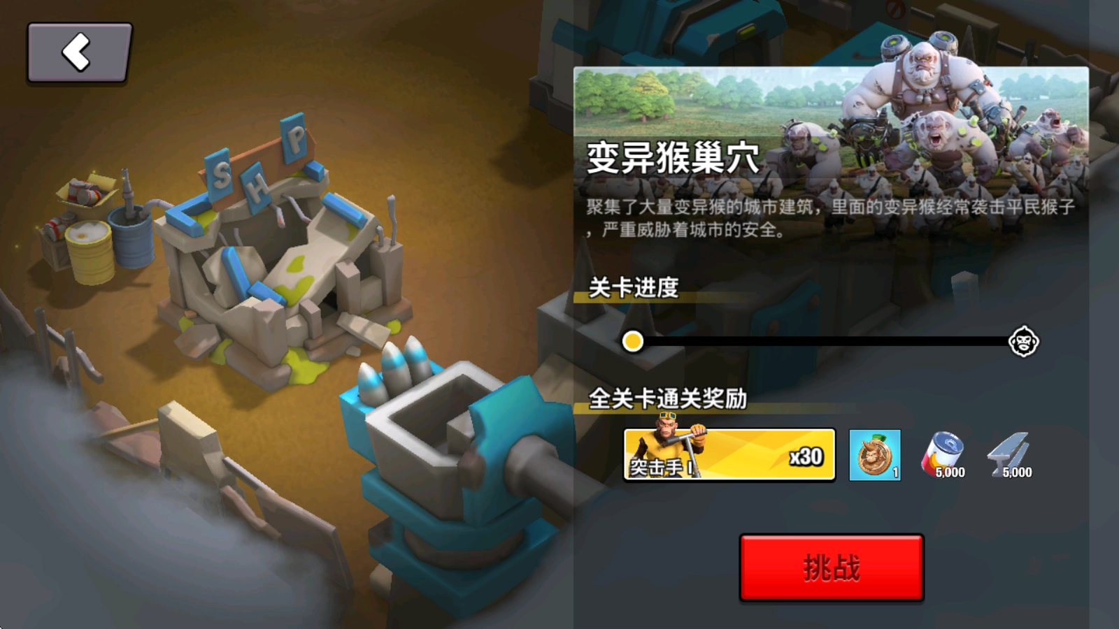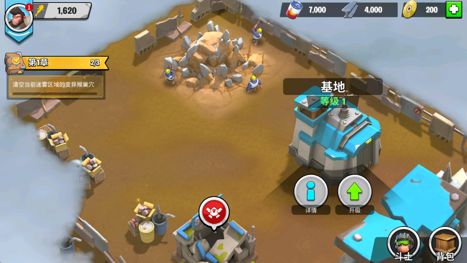 1、持续拓展并强化你的基地,训练出战力强悍的猿族军团,逐步扩大领地范围,钻研更尖端的武器技术,解锁更高级别的兵种单位。