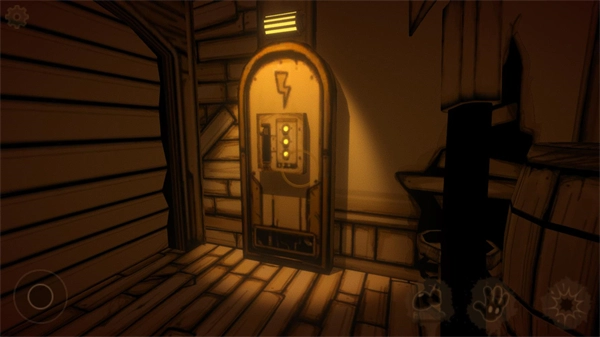 进入第二章后,先拿起旁边的斧子,接着打开被木板封住的门,一直往前走,直到出现目标提示——需要找到三个开关。其中两个开关在刚出门下楼梯的房间里,剩下的一个则位于油墨走廊尽头的左边,被一堆罐头挡住了。与这三个开关依次互动后,大门便会开启。